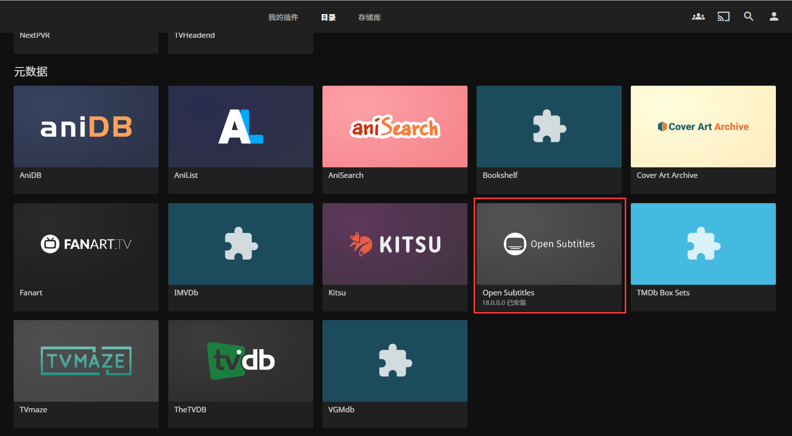 在可以正常搜刮出媒体信息时,仍然无法搜索到字幕,需要配置插件。