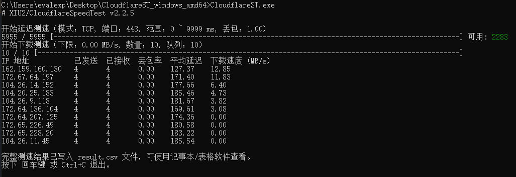 下载完成后运行exe文件,会得到较好的几个IP地址: