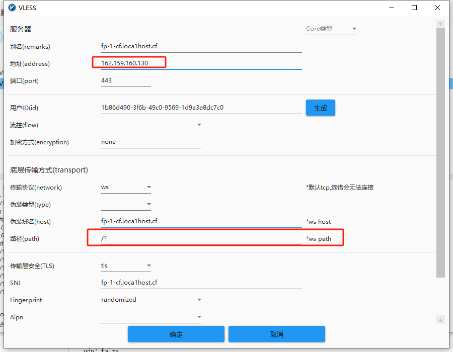 注意这里域名要换成自己的域名;然后直接粘贴到V2Ray中;将地址改为优选的IP并去除链接参数即完成: